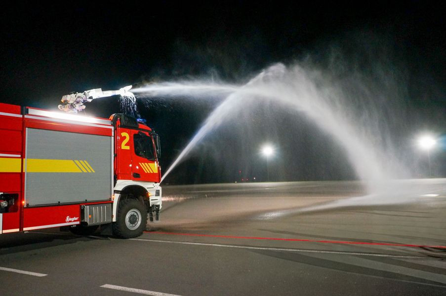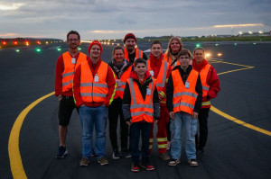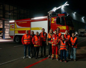 Nach einem obligatorischen Sicherheitscheck aller Teilnehmer führte ein Mitarbeiter, der mit einigen unserer Mitglieder befreundet ist, die Gruppe über das weitläufige Flughafengelände. Während der informativen und abwechslungsreichen Führung konnten zahlreiche Bereiche besichtigt werden – darunter die Gerätehalle mit Sonderfahrzeugen zur Enteisung der Startbahn und der Flugzeuge, die Flugzeugwerft, das Testgelände für Triebwerke, die Startbahn mit ihrer beeindruckenden Signalbeleuchtung sowie das Feuerwehrgebäude mit seinen imposanten Einsatzfahrzeugen. Um Einsatzbeleuchtung und Wasserwerfer vorzuführen, wurden zwei der Fahrzeuge sogar aus der Halle gefahren – das sieht man natürlich nicht alle Tage!